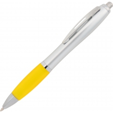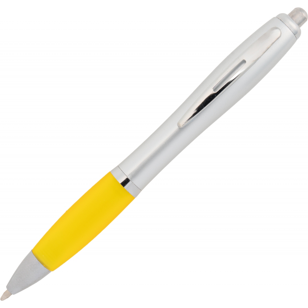 Classic plastic pen is a top seller among promotional gadgets. Equipped with a non-slip rubber grip area, it ensures a secure hold and comfort while writing. Shiny finishing elements give it a modern look, and the click mechanism allows for easy and quick ink refill extension.
