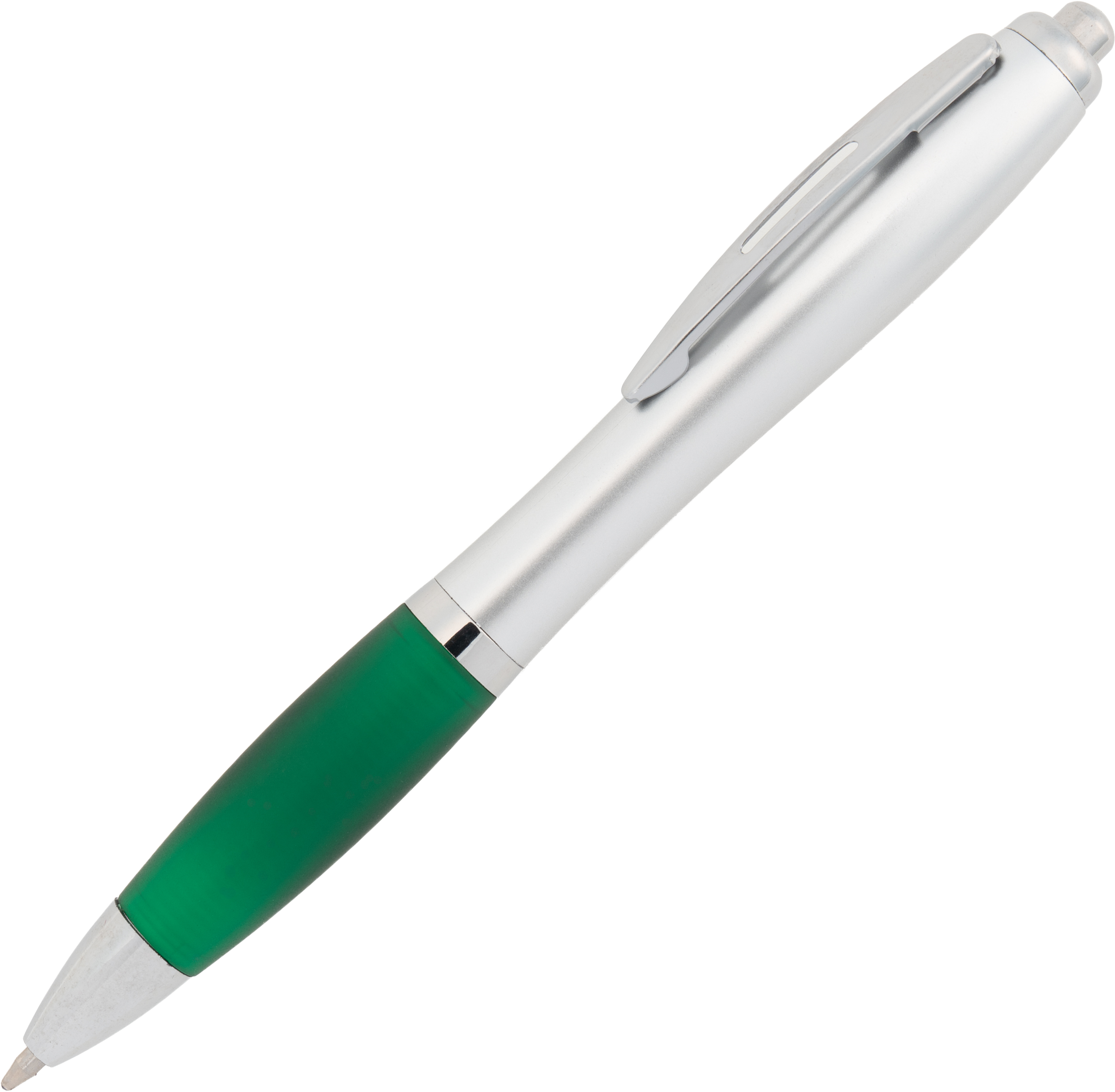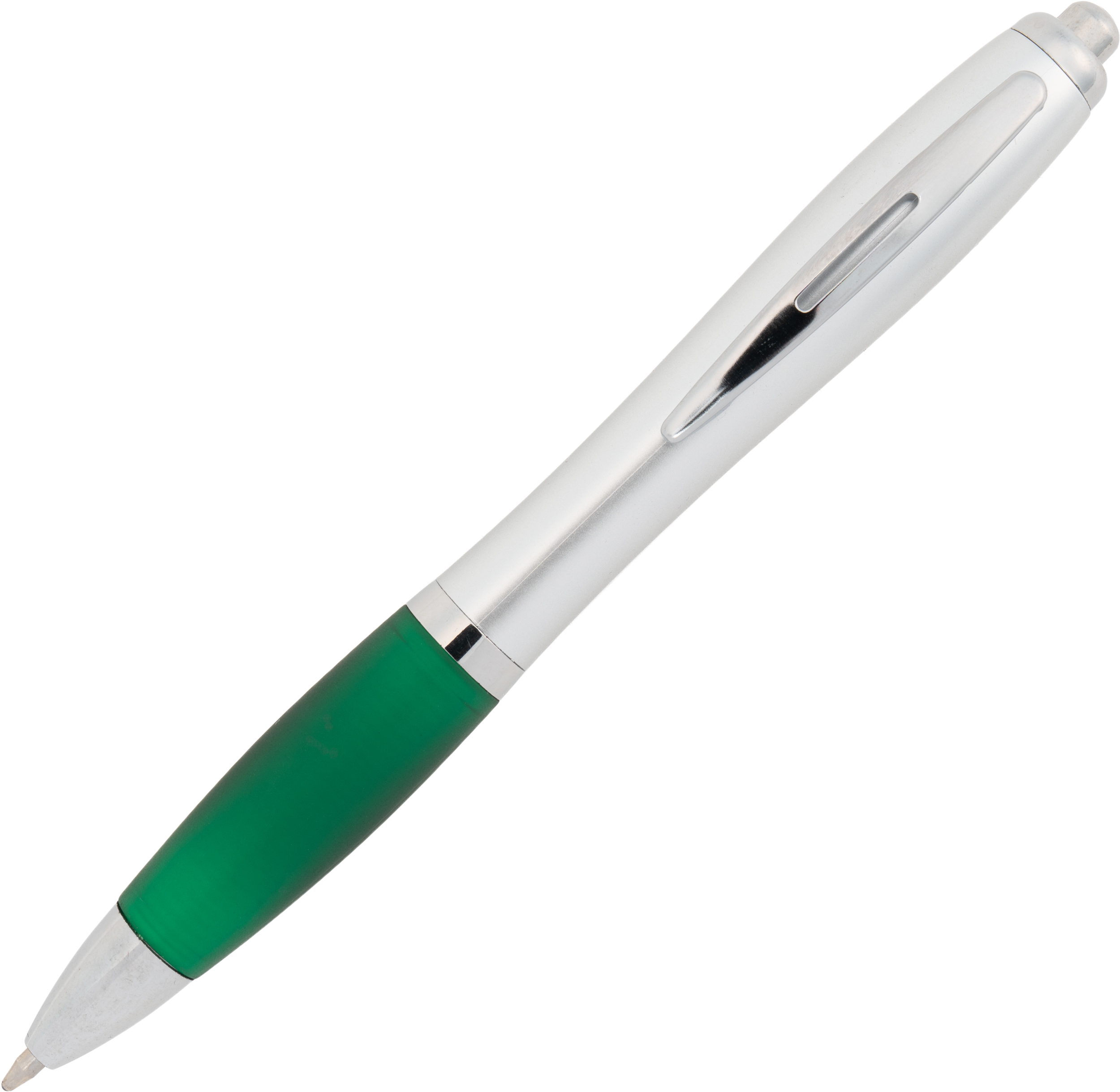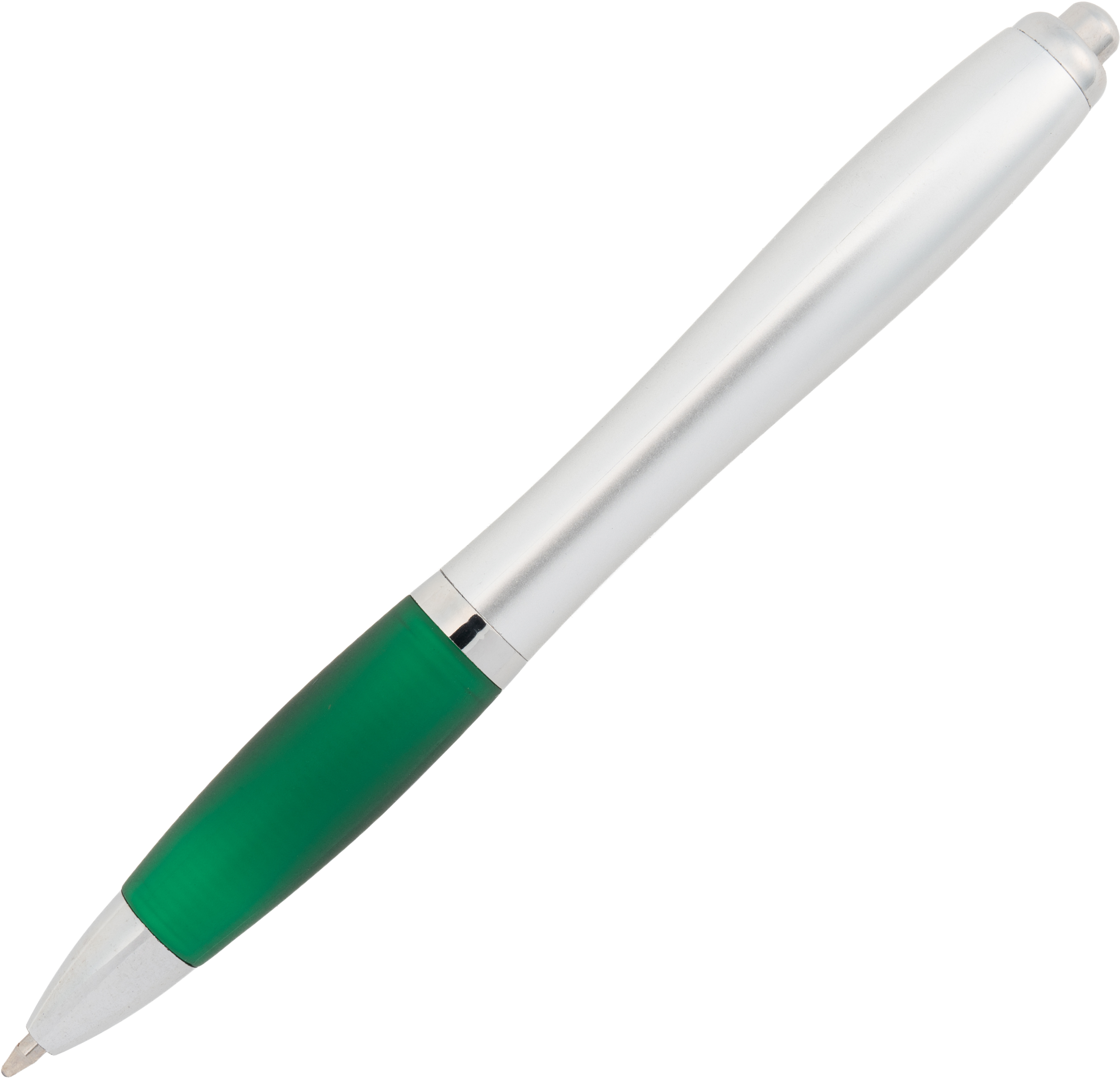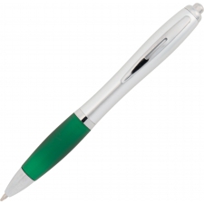 Ball pen with a satin finish and a rubber grip zone, comes with a blue-writing large refill.