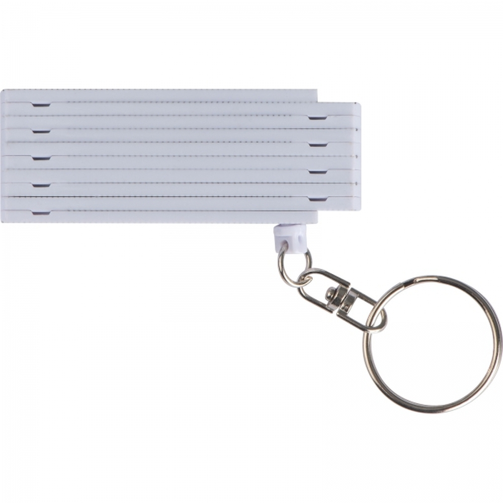 Keyring with fold-out plastic ruler with up to 0.5 metres measuring range (scaling in cm.) Your logo will be printed on the ruler.
