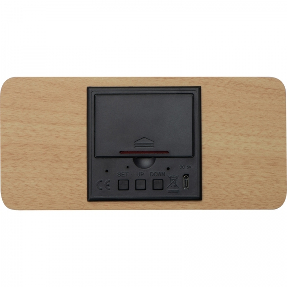 This clock is not only a practical gadget but also an excellent advertising medium, allowing you to place your company logo on its surface.General features: Alarm and snooze functions. Input DC5V/200mAh; working power: 5W.