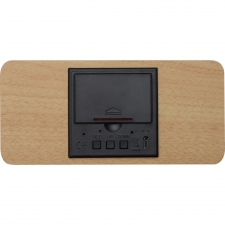 Elegant desk clock made from a combination of wood and plastic. It’s a stylish and functional addition to any workspace. Its illuminated display clearly shows the time and the current room temperature, keeping you up to date with both time and indoor conditions.