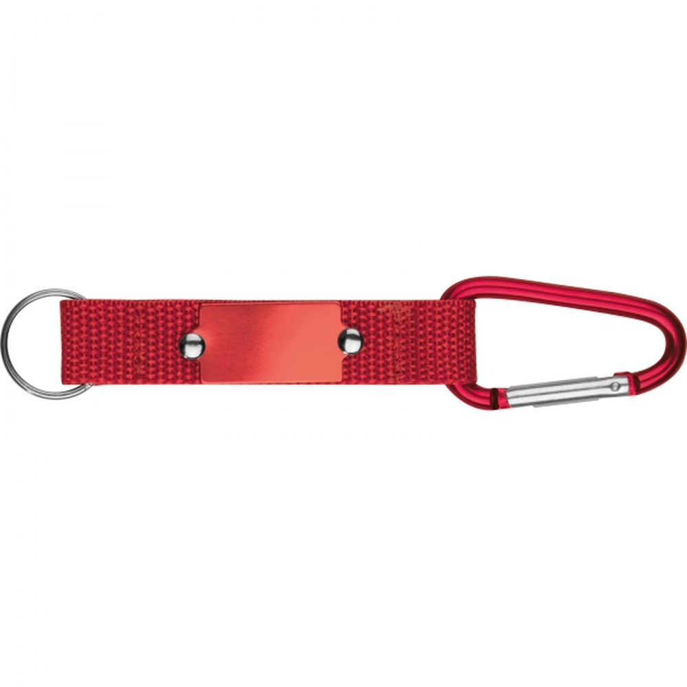 Metal keychain with a carabiner on a polyester strap is a practical and stylish accessory that provides convenient storage for keys or other small items. The carabiner allows for easy attachment to a backpack, bag, or belt, while the durable polyester strap ensures the product’s longevity.
