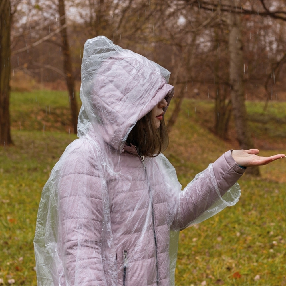 The product comes packed in a convenient pouch, making it easy to carry and store. Choose this transparent rain cape and enjoy comfort and protection from the rain in any weather!