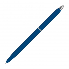 Slim, rubberized metal ball pen in different colors, with silver applications and black-writing refill. We will engrave your logo to the right of the clip.