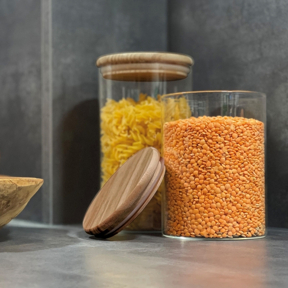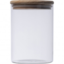 Storage jar made of borosilicate glass with a bamboo lid and silicone ring. Capacity of 700 ml.