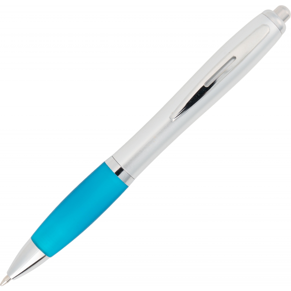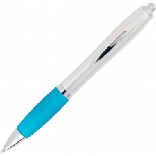 Ball pen with a satin finish and a rubber grip zone, comes with a blue-writing large refill.