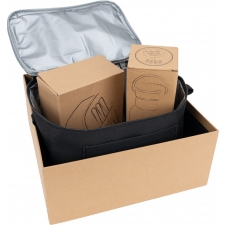 We present a gift set that is an excellent choice for those who value eco-friendly and practical solutions. This set includes three items: a lunch box, a jute cooler bag, and a drinking bottle, all packaged in an attractive cardboard box. The gift set combines practicality with elegance and an environmentally conscious approach to everyday use.