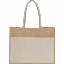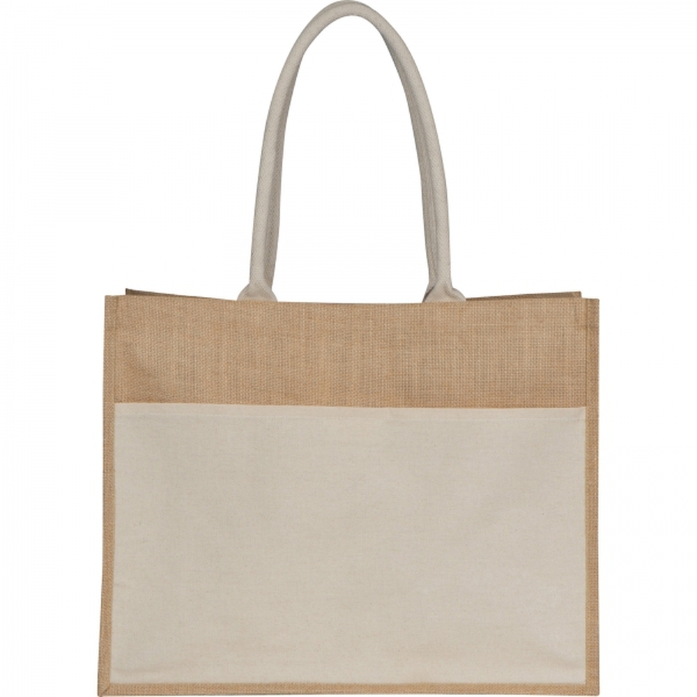 This makes the bag both a practical accessory and an elegant promotional item. Long, sturdy handles provide comfortable carrying, even when the bag is fully loaded. The wide base further increases its capacity and stability, making it perfect for everyday shopping as well as carrying documents or other items.General features: Organic laminated jute, durable and resistant to stretching.