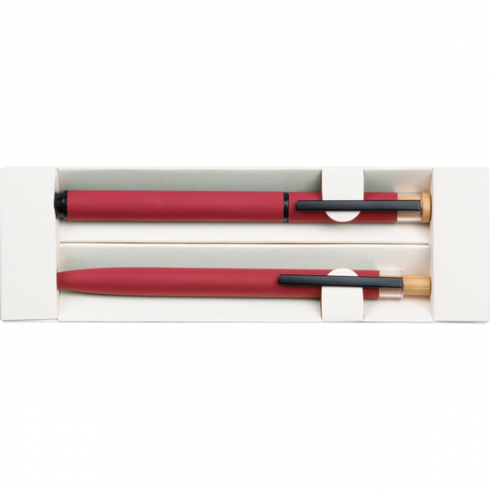 Pen and Rollerball Pen Set is an elegant and eco-friendly choice for those who value both functionality and environmental care. Comprising two high-quality writing instruments—a blue ink ballpoint pen and a rollerball pen—this set is designed with durability and aesthetics in mind. Made from recycled aluminum, it exemplifies a sustainable approach to manufacturing.