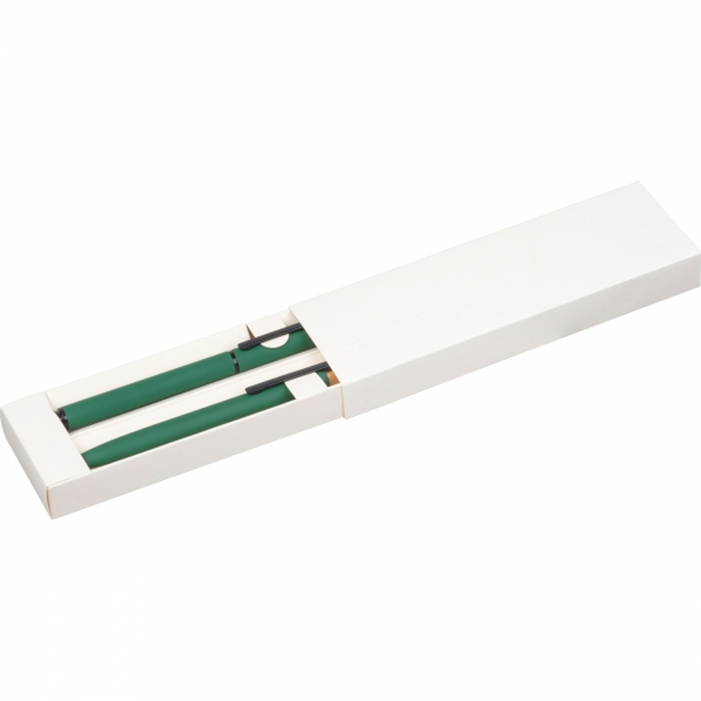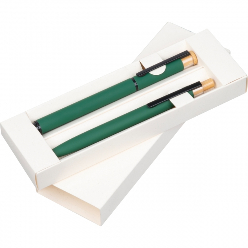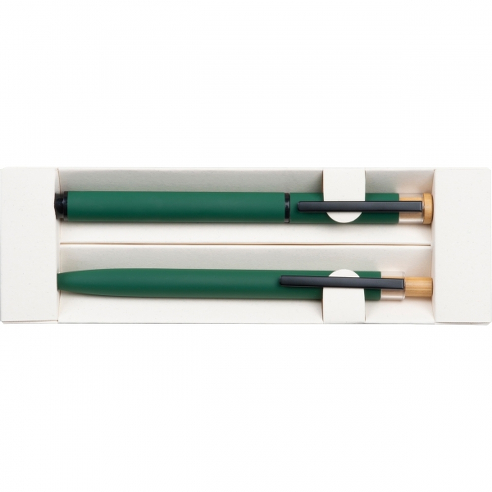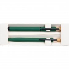 Pen and Rollerball Pen Set is an elegant and eco-friendly choice for those who value both functionality and environmental care. Comprising two high-quality writing instruments—a blue ink ballpoint pen and a rollerball pen—this set is designed with durability and aesthetics in mind. Made from recycled aluminum, it exemplifies a sustainable approach to manufacturing.