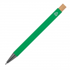 Metal pen made from recycled aluminum is an elegant and practical choice for everyday use. Its body stands out for its durability, while the bamboo button adds a natural touch.