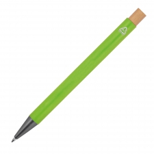 Metal pen made from recycled aluminum is an elegant and practical choice for everyday use. Its body stands out for its durability, while the bamboo button adds a natural touch.