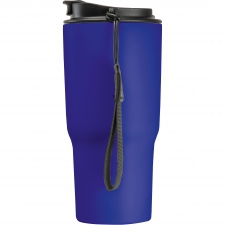 Elegant double-walled vacuum drinking cup made of stainless steel with a capacity of 550ml, a leak-proof screw cap and drinking opening as well as a practical carrying strap.