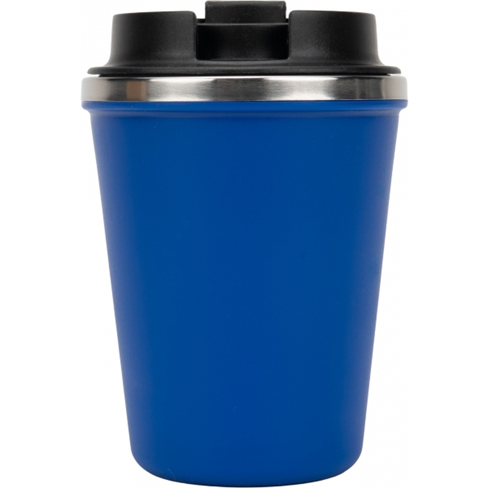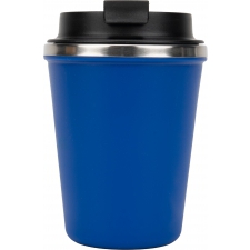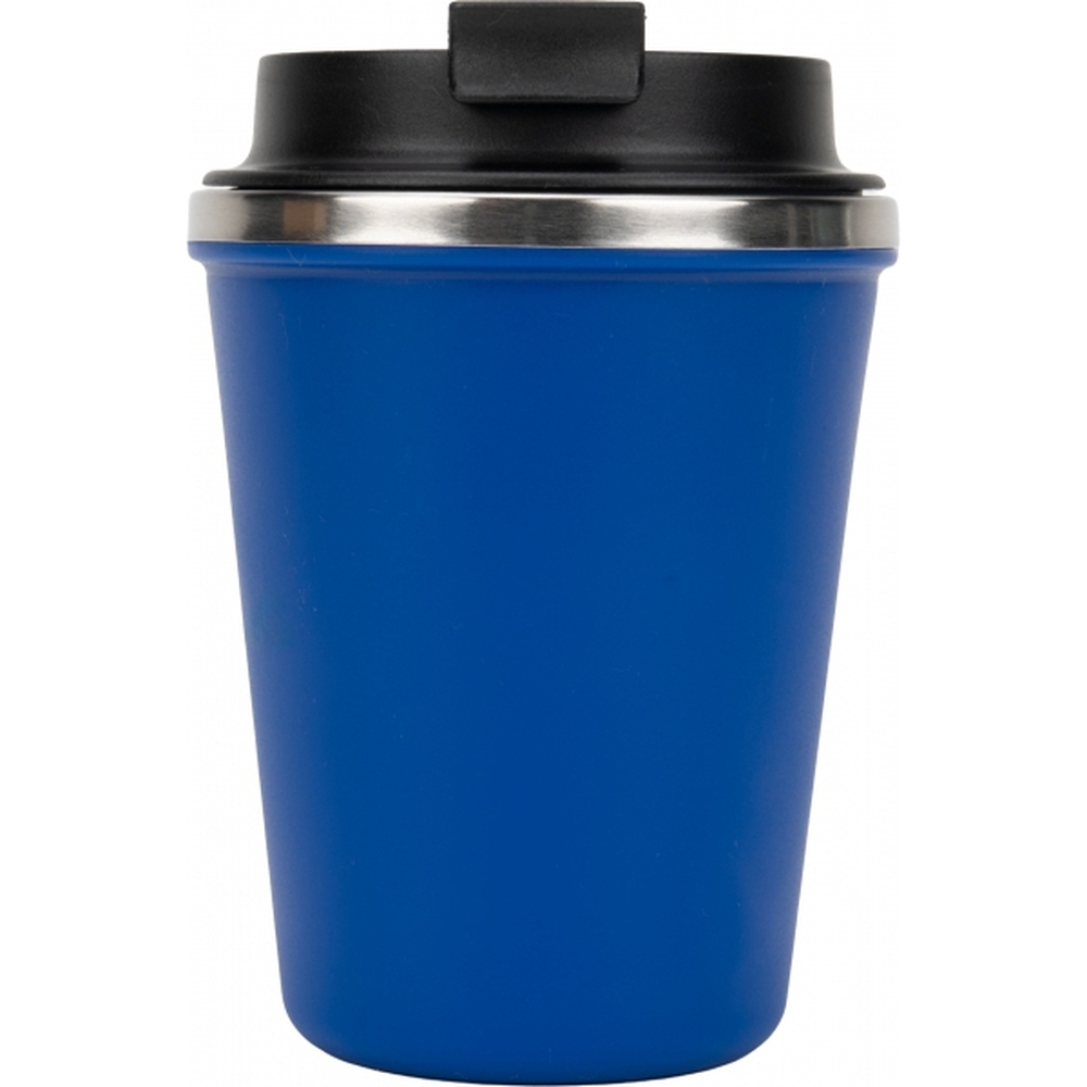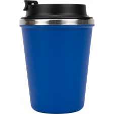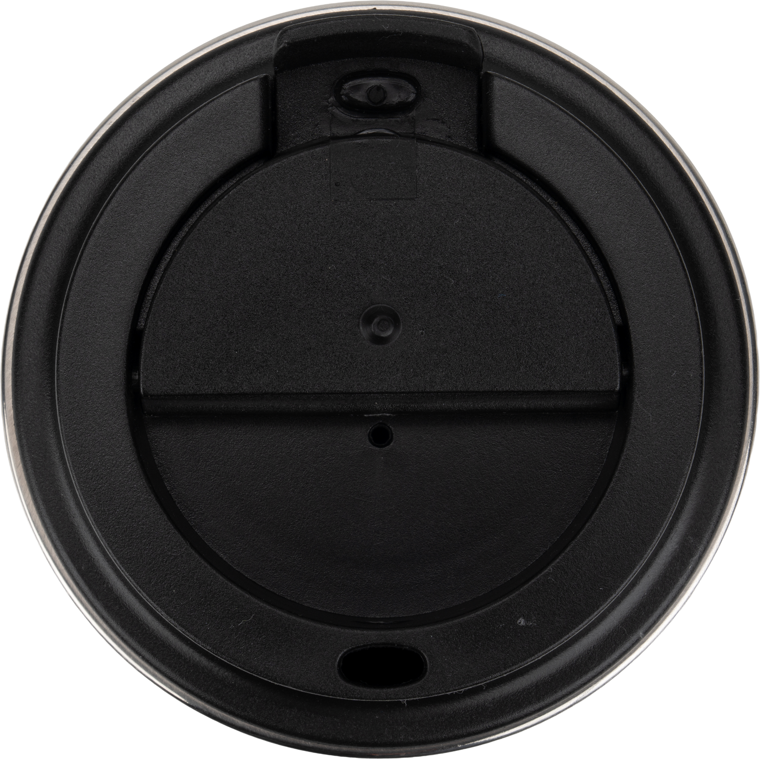 Double-walled drinking cup with a stainless steel interior and a recycled plastic exterior. Filling capacity of 350ml and a leak-proof screw cap with lockable drinking opening.The mug keeps the drink warm for 4 hours.