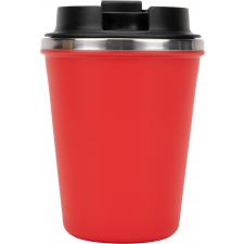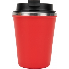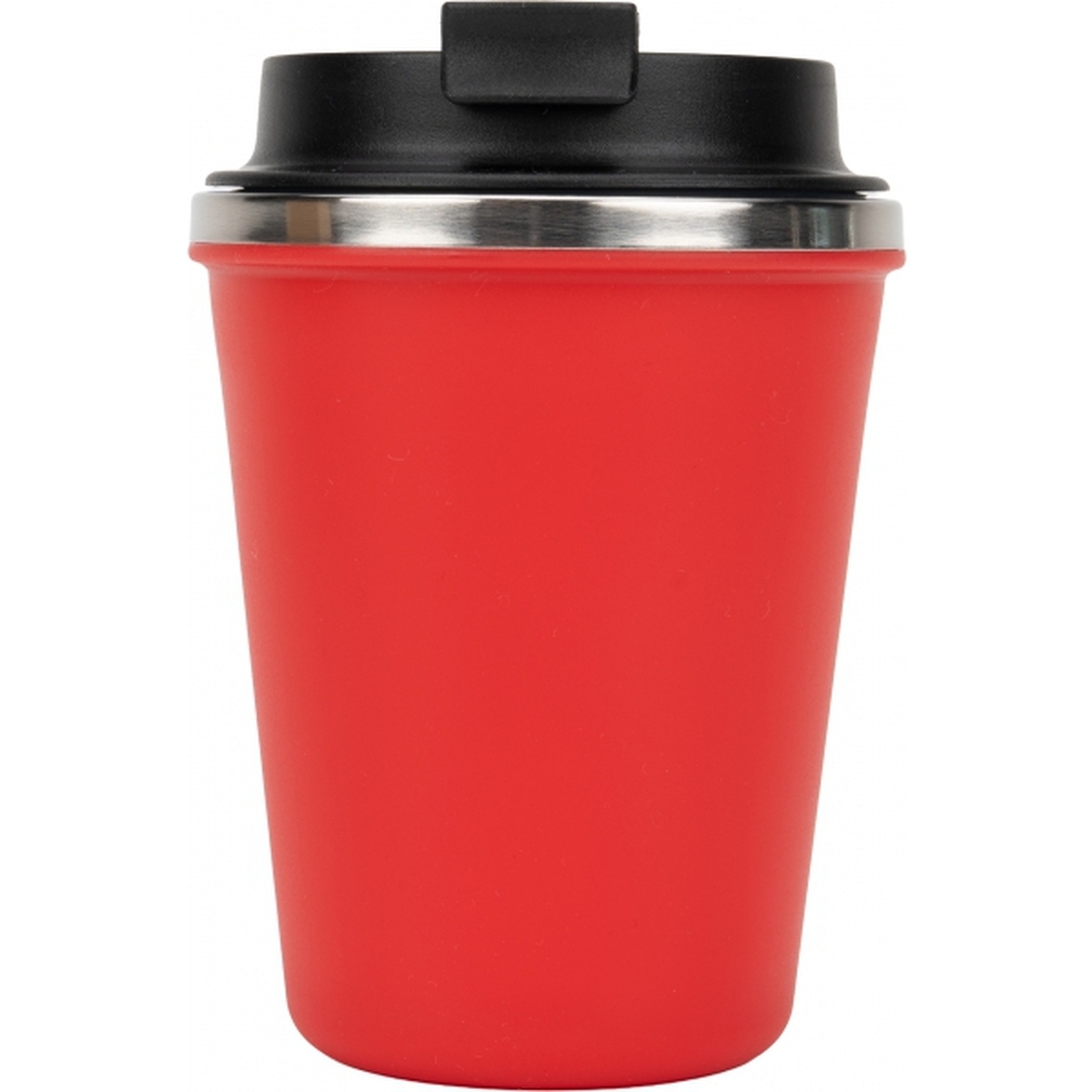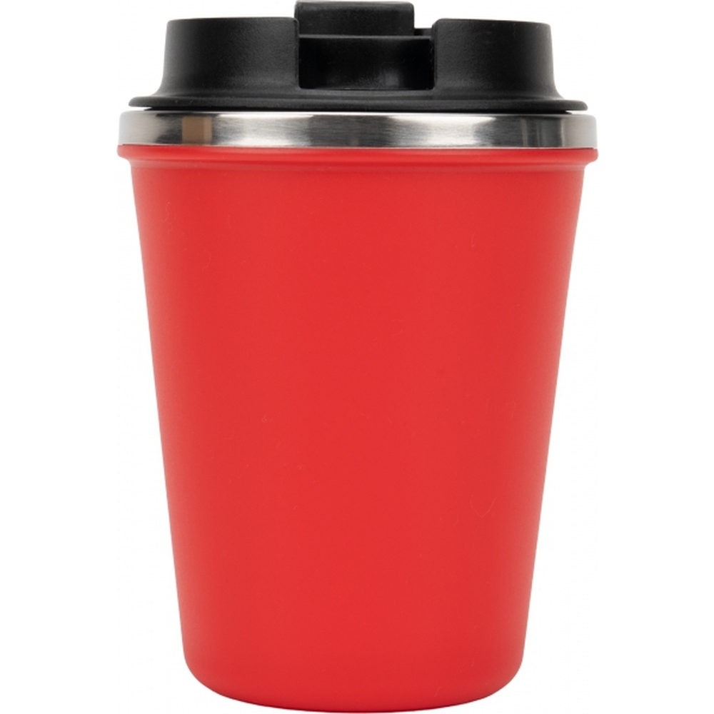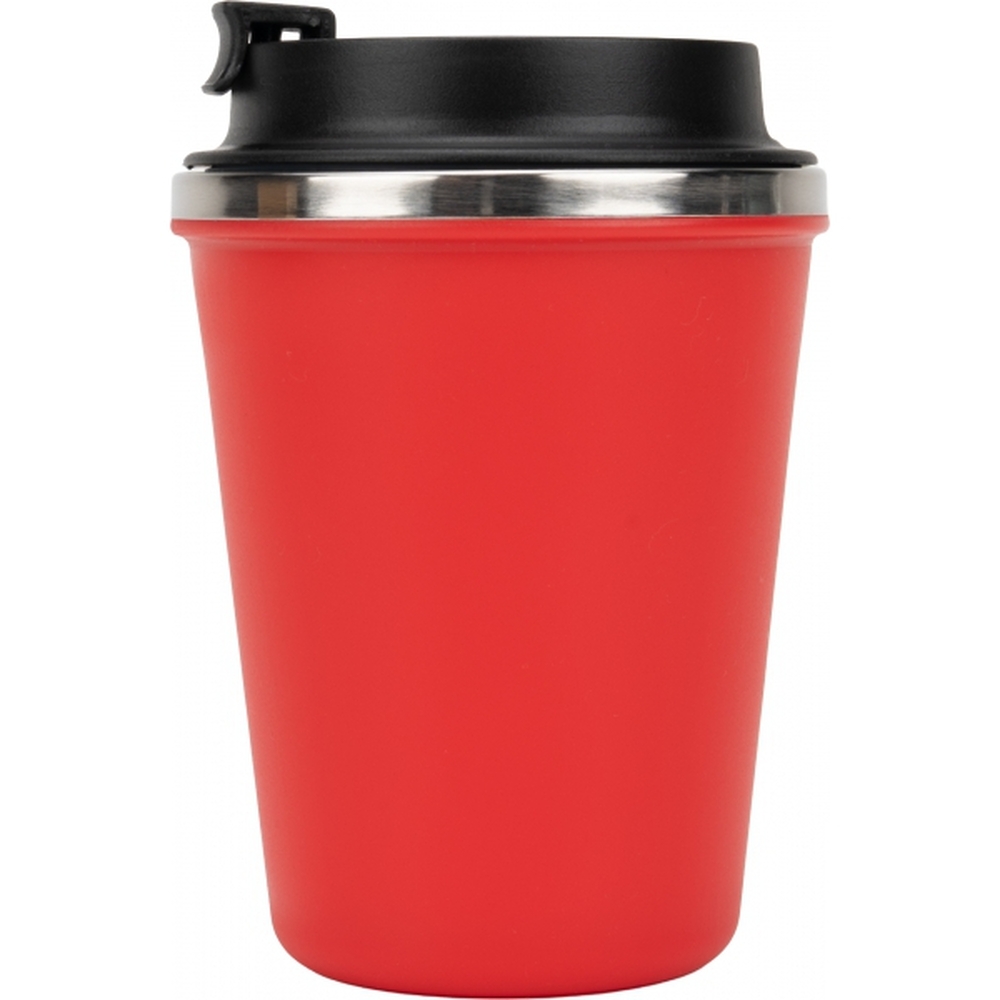 Double-walled drinking cup with a stainless steel interior and a recycled plastic exterior. Filling capacity of 350ml and a leak-proof screw cap with lockable drinking opening.The mug keeps the drink warm for 4 hours.