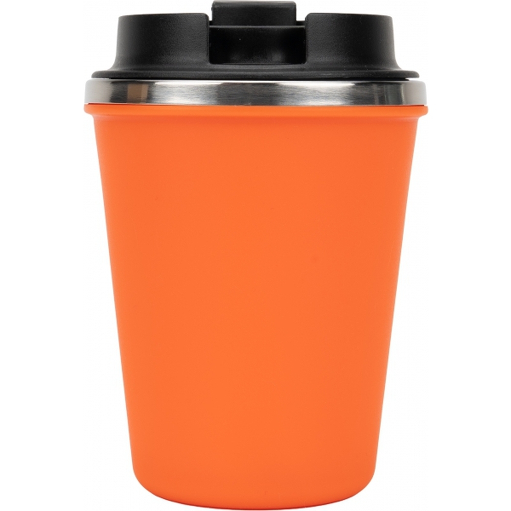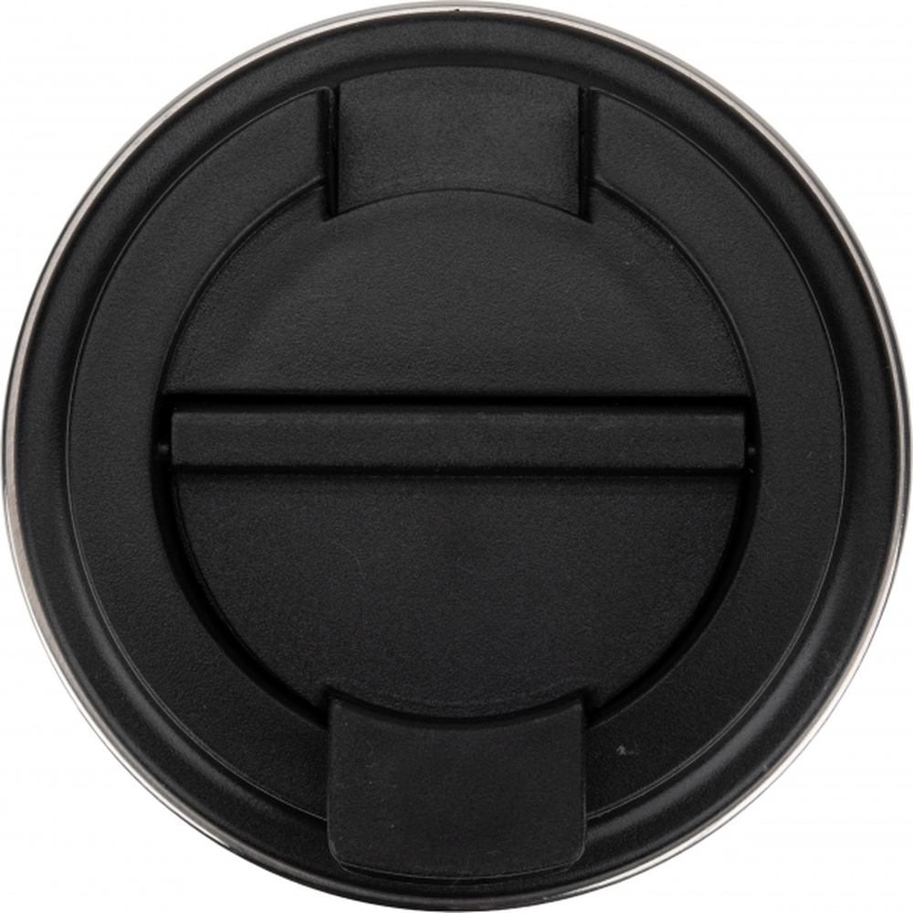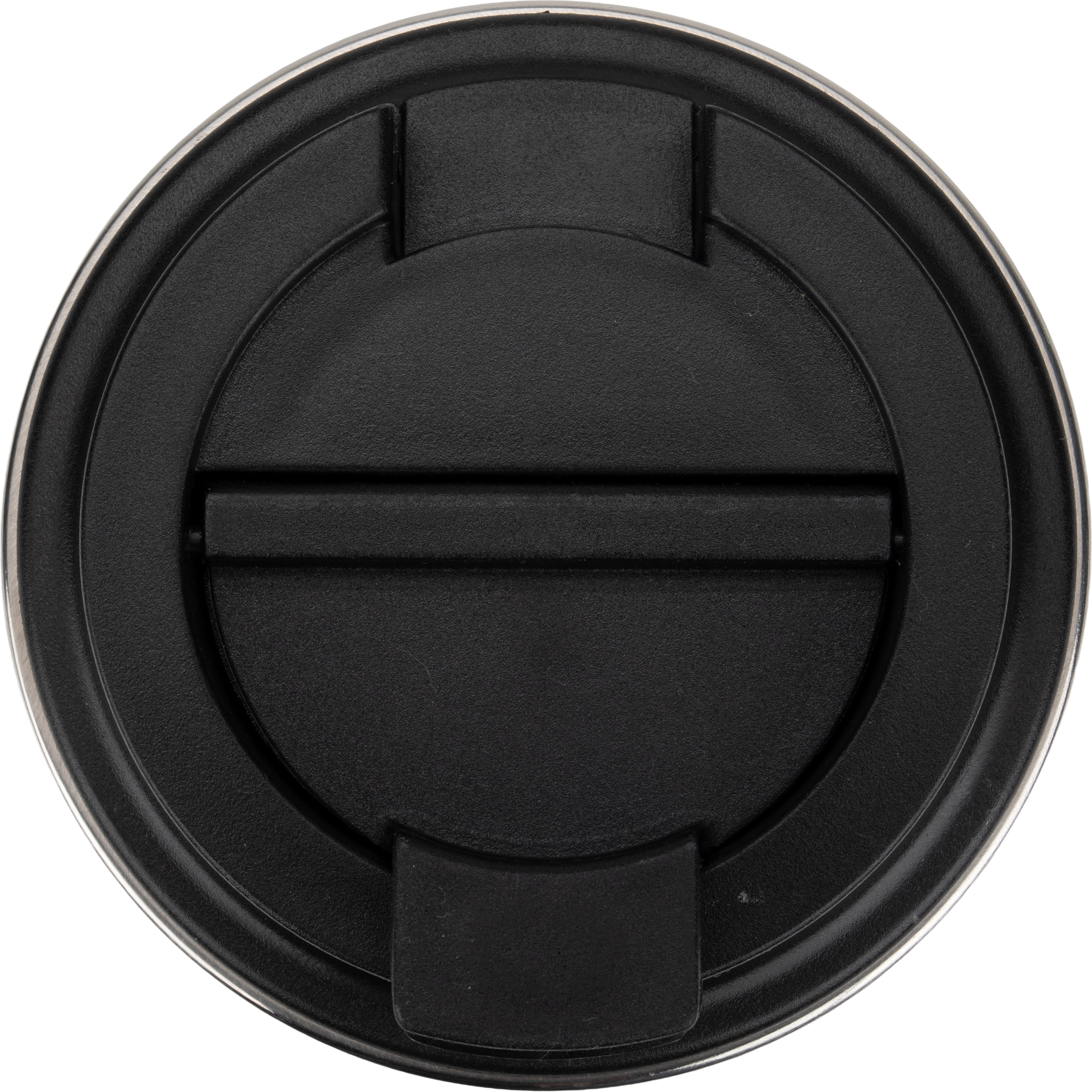 Double-walled drinking cup with a stainless steel interior and a recycled plastic exterior. Filling capacity of 350ml and a leak-proof screw cap with lockable drinking opening.The mug keeps the drink warm for 4 hours.