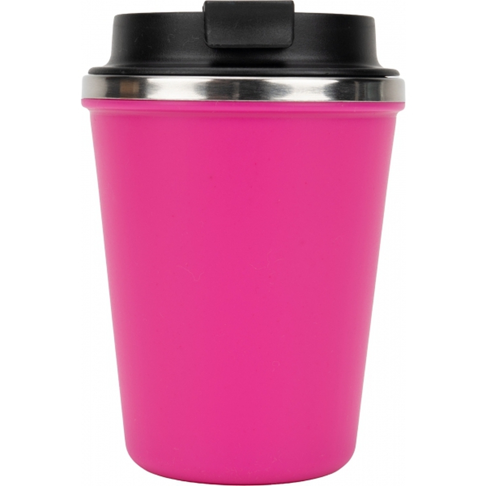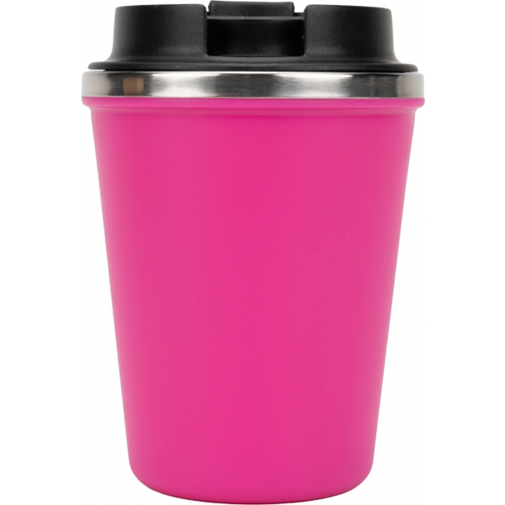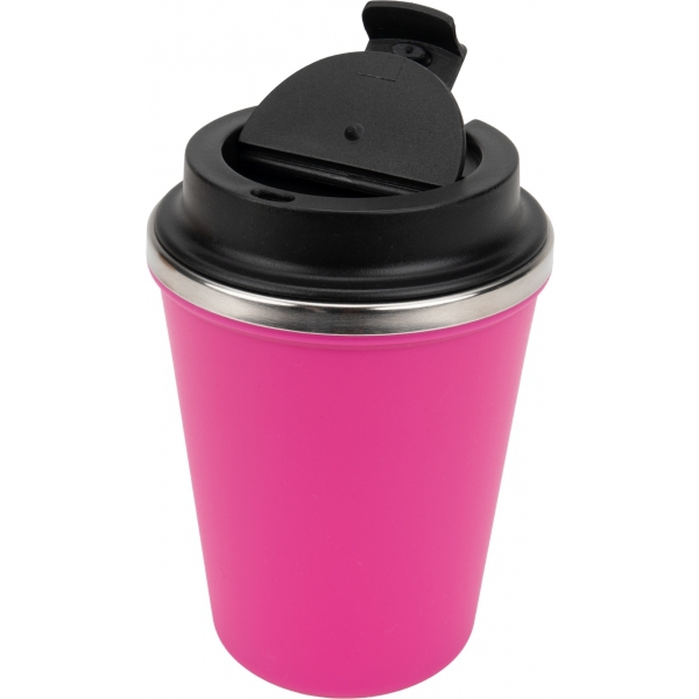 Double-walled drinking cup with a stainless steel interior and a recycled plastic exterior. Filling capacity of 350ml and a leak-proof screw cap with lockable drinking opening.The mug keeps the drink warm for 4 hours.