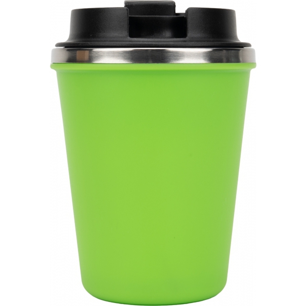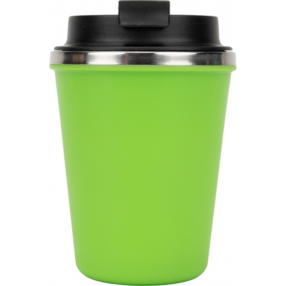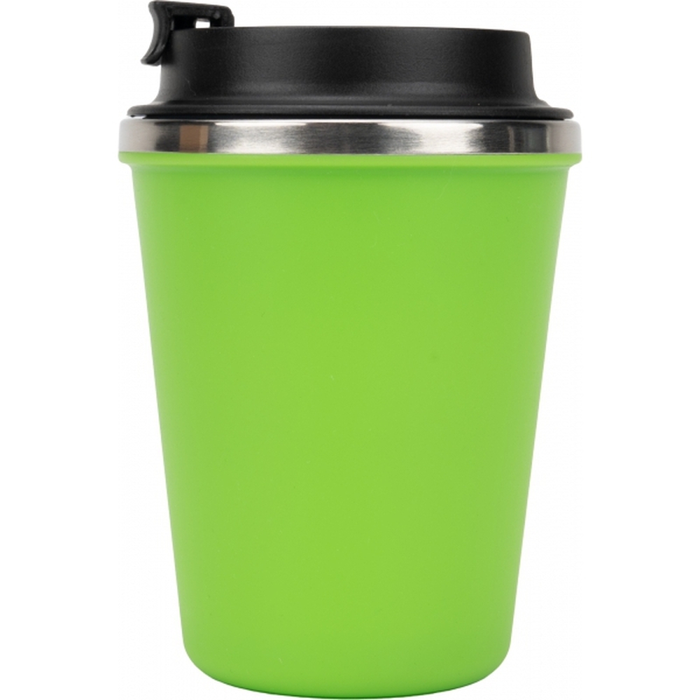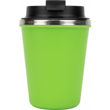 Double-walled drinking cup with a stainless steel interior and a recycled plastic exterior. Filling capacity of 350ml and a leak-proof screw cap with lockable drinking opening.The mug keeps the drink warm for 4 hours.