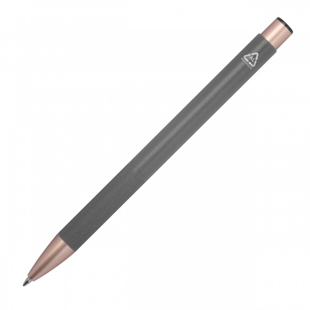 A stylish pen that combines modern design with an eco-conscious approach. Made from recycled aluminum, it features a matte finish that gives it exceptional elegance and makes it perfect for any business setting. Subtle rose gold accents complete the look, highlighting the pen’s prestigious character.