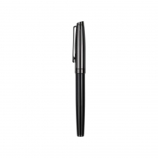The pen’s body is made of metal and finished in a glossy black coating, giving it a prestigious and refined appearance. The upper section in a gunmetal shade subtly breaks the classic black, creating a modern and well-balanced color composition.