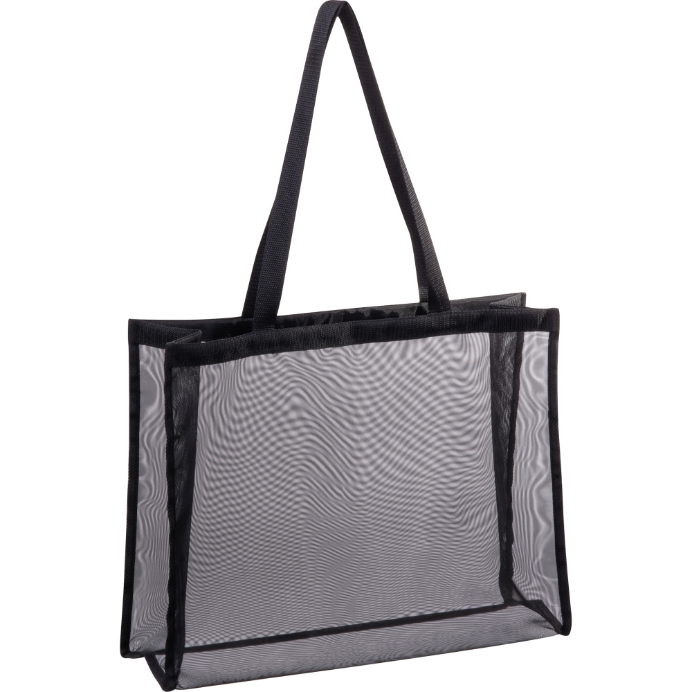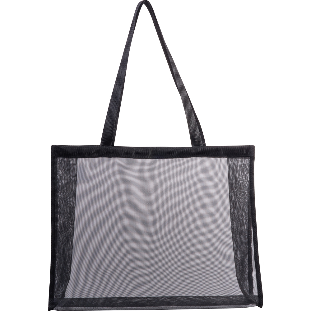 Large, transparent beach or shopping bag made of polyester with long carrying handles with a big main compartment.