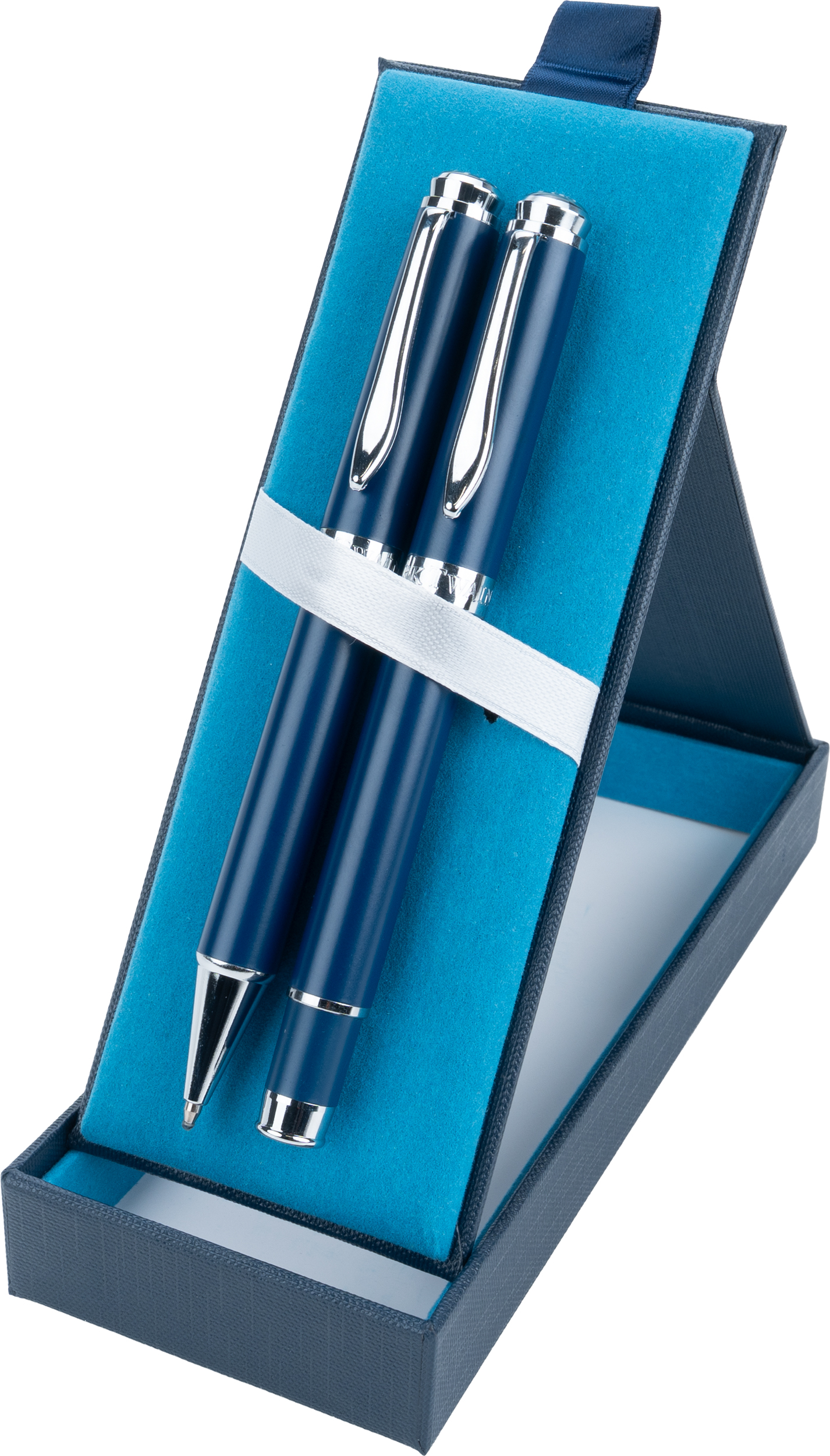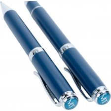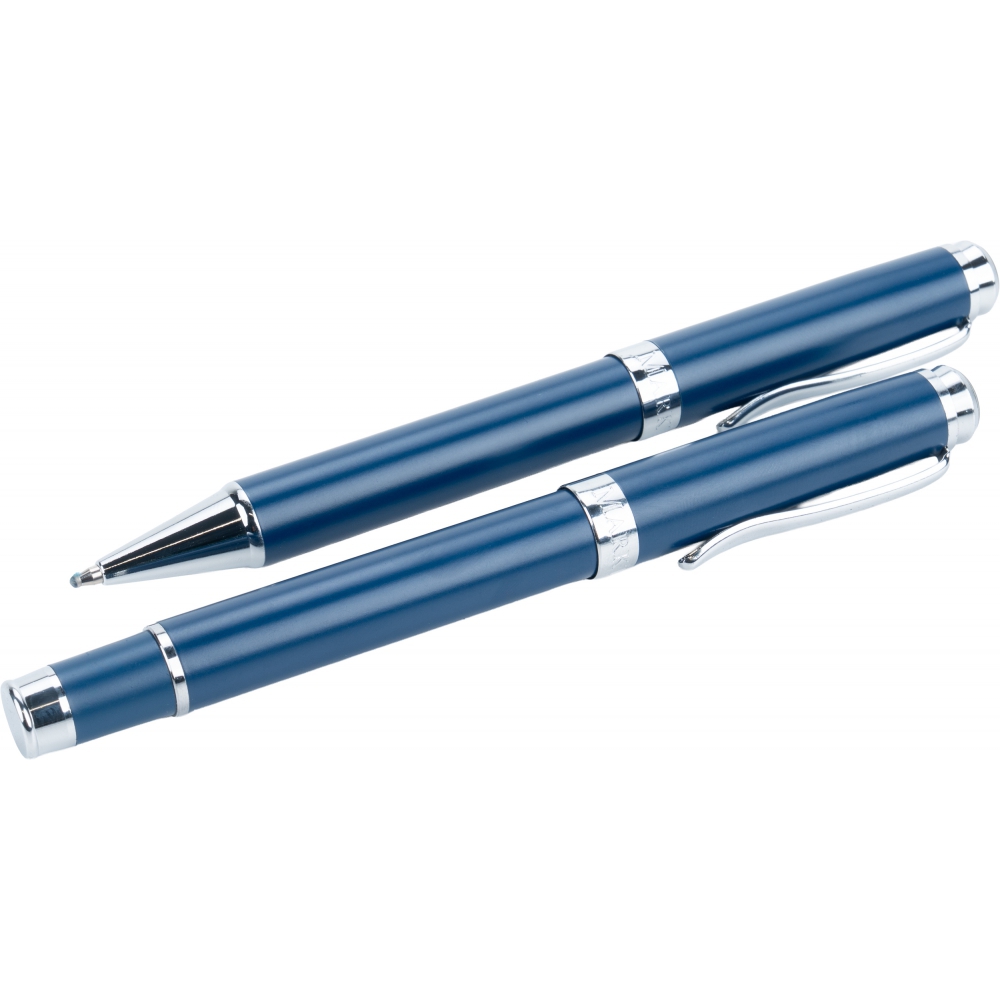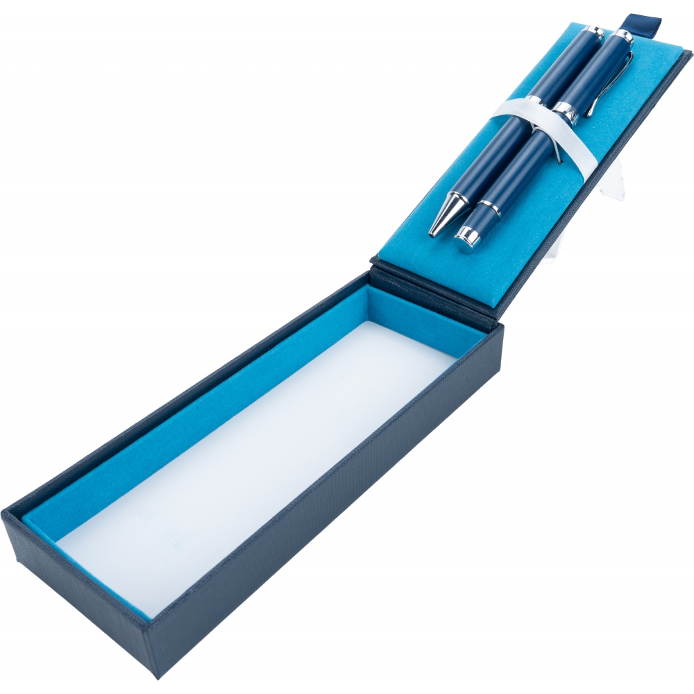 An exclusive writing set that combines functionality with elegance. The set includes two high-quality writing instruments: a pen with a writing length of up to 1200 metres and a rollerball pen with a writing length of up to 400 metres. Both are equipped with blue refills that provide smooth and clear writing, ideal for everyday note-taking.