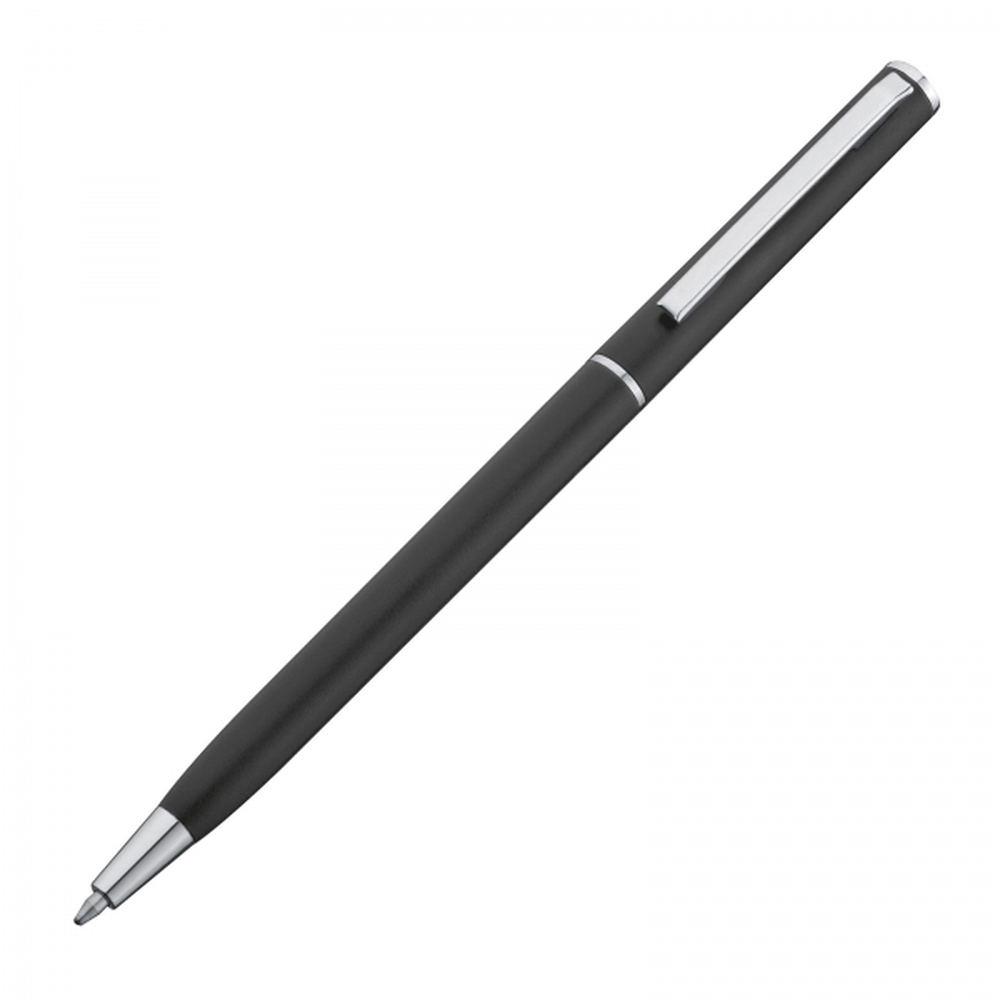Twist mechanism ball pen made of plastic with blue-writing refill. This ball pen is due to its slim shape perfectly suited for loops of notebooks. We will print your advertising right from the clip.