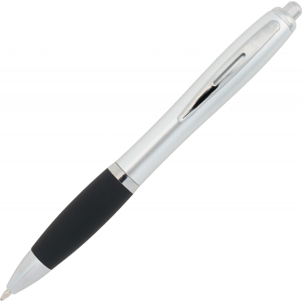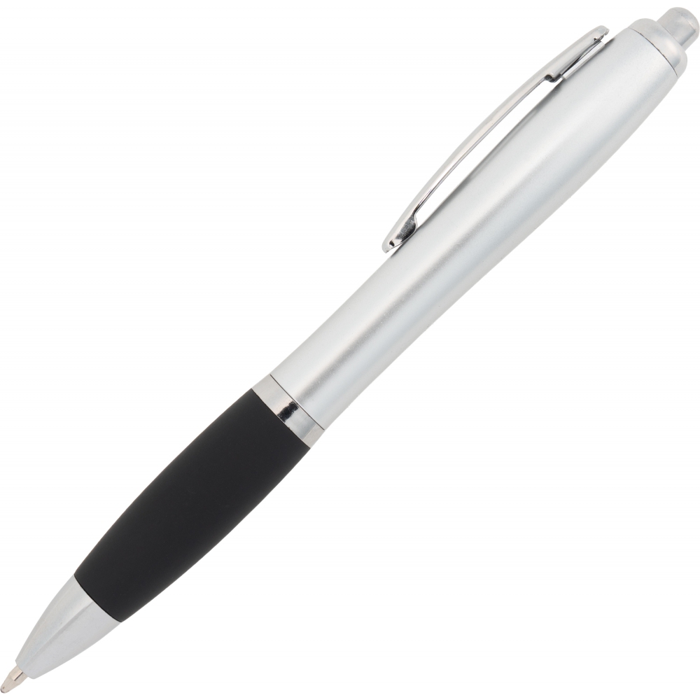 Classic plastic pen is a top seller among promotional gadgets. Equipped with a non-slip rubber grip area, it ensures a secure hold and comfort while writing. Shiny finishing elements give it a modern look, and the click mechanism allows for easy and quick ink refill extension.