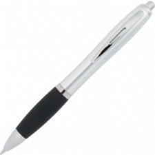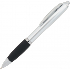 Ball pen with a satin finish and a rubber grip zone, comes with a blue-writing large refill.