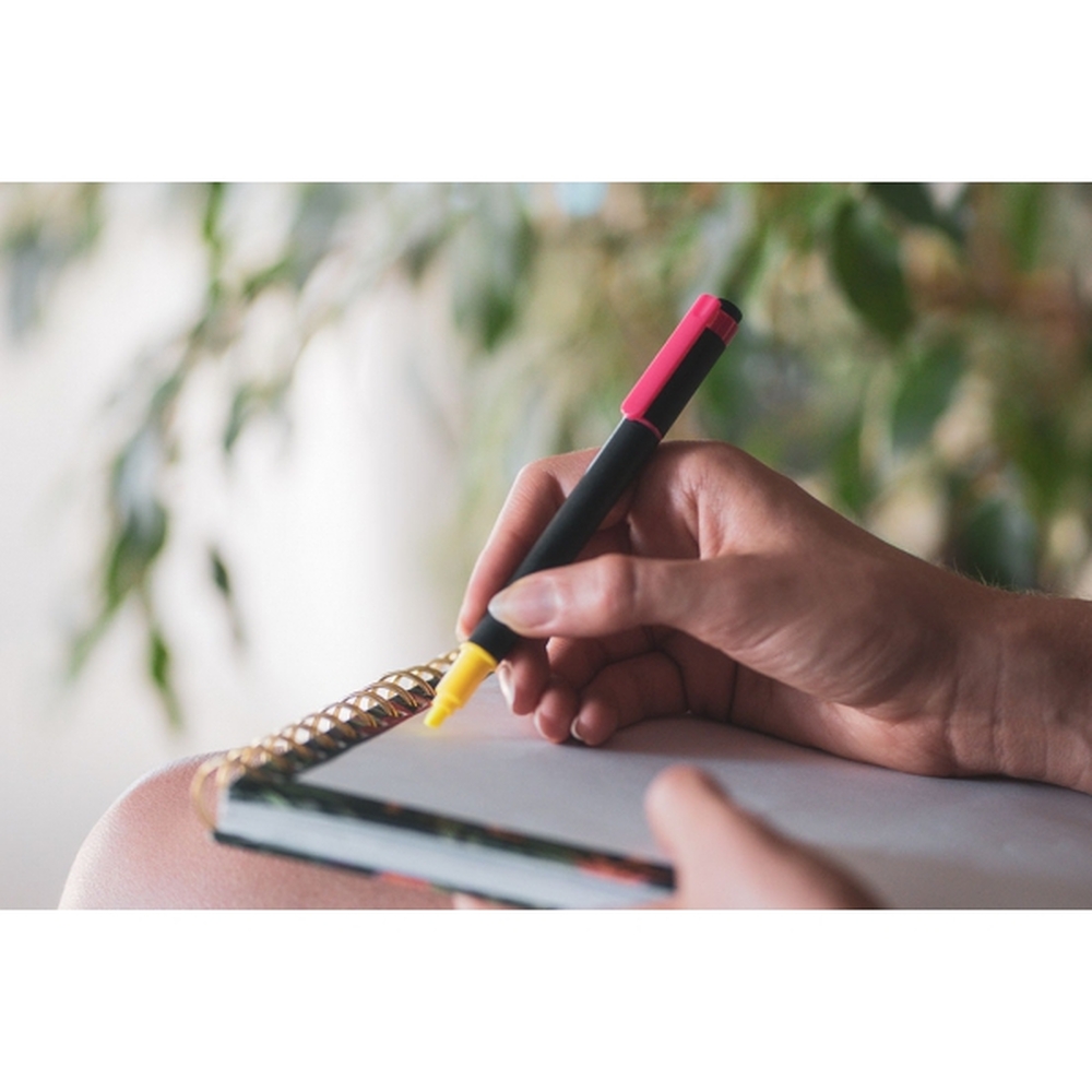 Double-Ended Highlighter with 2 Colors is a practical office tool perfect for both work and school. Made from durable plastic, this highlighter features two vibrant neon colors – pink and yellow – allowing you to highlight text clearly and create striking notes. Thanks to its double-ended design, users benefit from two different tip widths in one highlighter, enhancing versatility and convenience.With two colors in one pen, it’s easy to organize information and add lively accents to your documents.