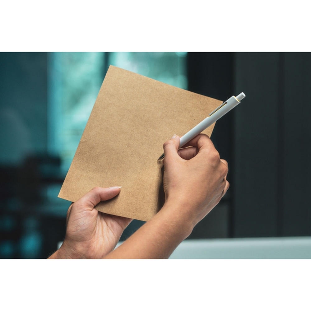 Plastic pen with blue ink refill is a perfect blend of classic aesthetics and modern touches. Its white casing gives it an elegant, versatile look that fits any setting – office, school, or home desk. Additionally, the colorful detail under the clip subtly highlights its contemporary design.