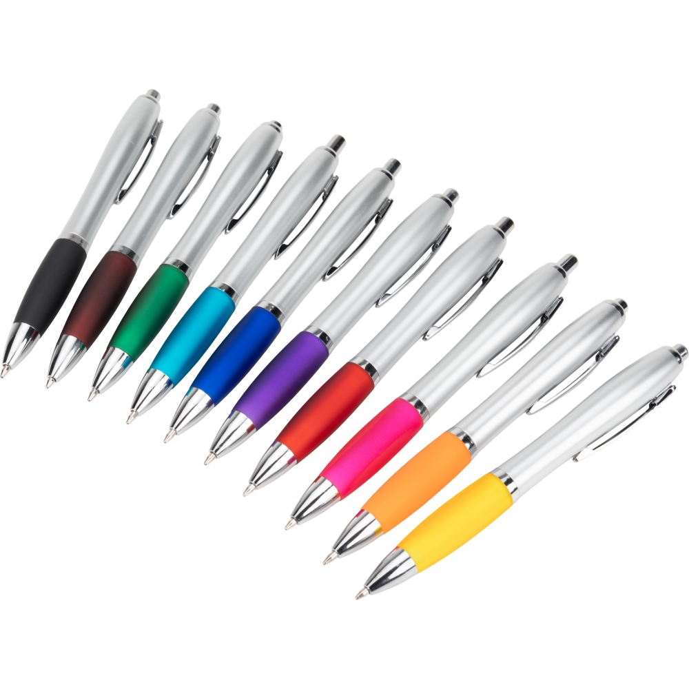 Classic plastic pen is a top seller among promotional gadgets. Equipped with a non-slip rubber grip area, it ensures a secure hold and comfort while writing. Shiny finishing elements give it a modern look, and the click mechanism allows for easy and quick ink refill extension.