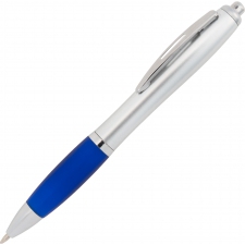 Ball pen with a satin finish and a rubber grip zone, comes with a blue-writing large refill.